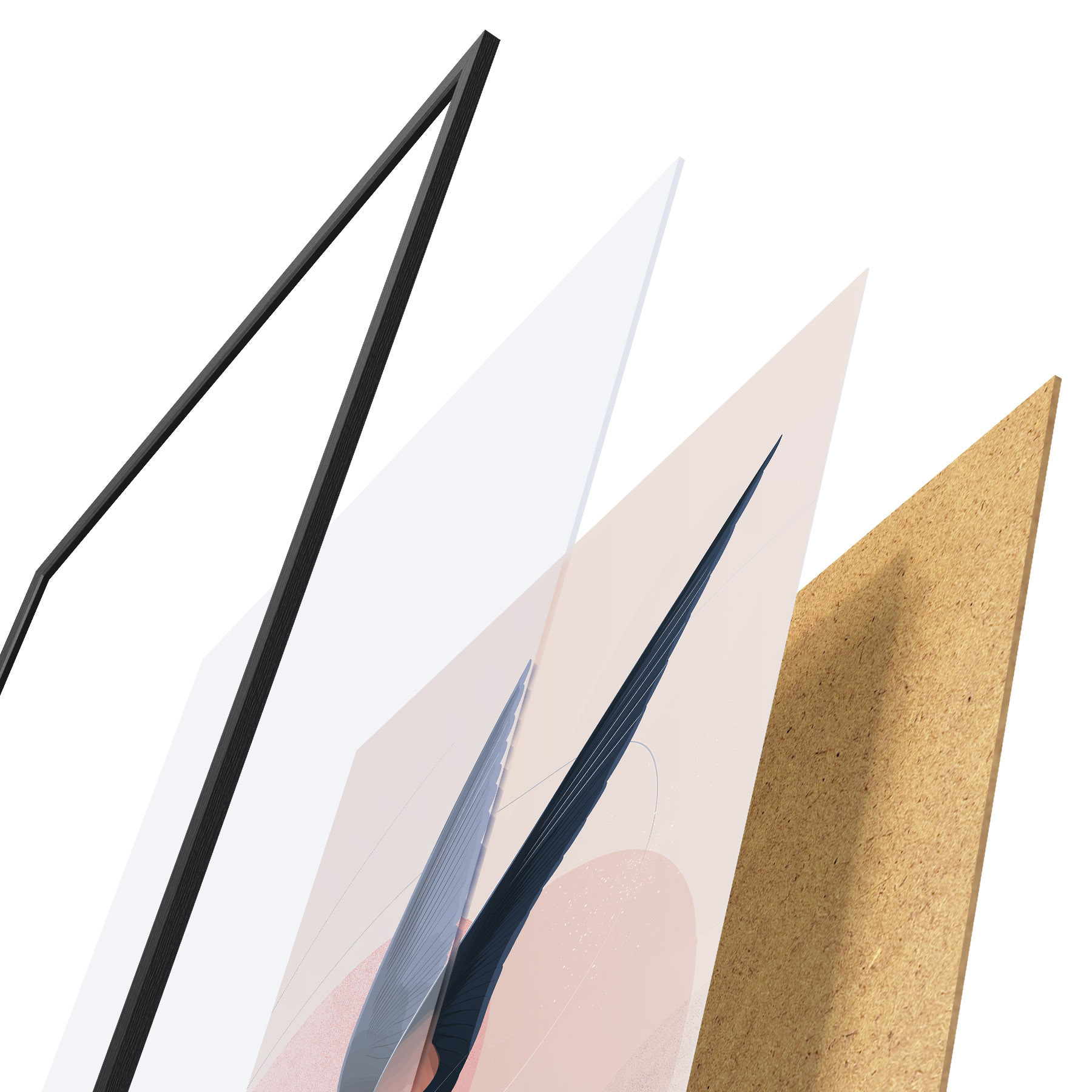 Das Poster besteht aus einem Rahmen, Plexiglas, einem gedruckten Bild und einer Rückwand aus Spanplatten. Dank der Halterungen auf der Rückseite kann das Poster sofort an die Wand gehängt werden.