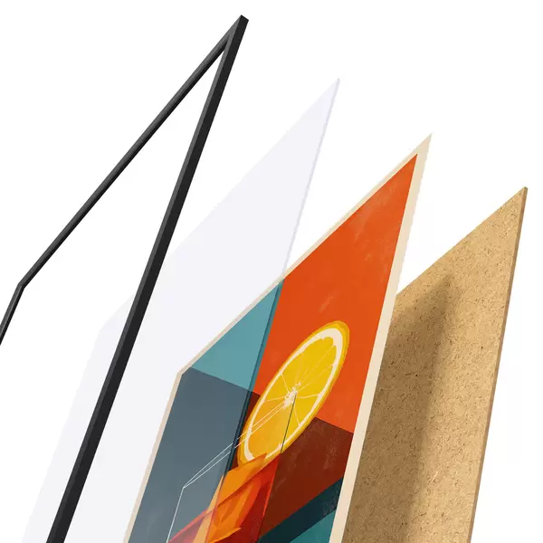 Das Poster besteht aus einem Rahmen, Plexiglas, einem gedruckten Bild und einer Rückwand aus Spanplatten. Dank der Halterungen auf der Rückseite kann das Poster sofort an die Wand gehängt werden.
