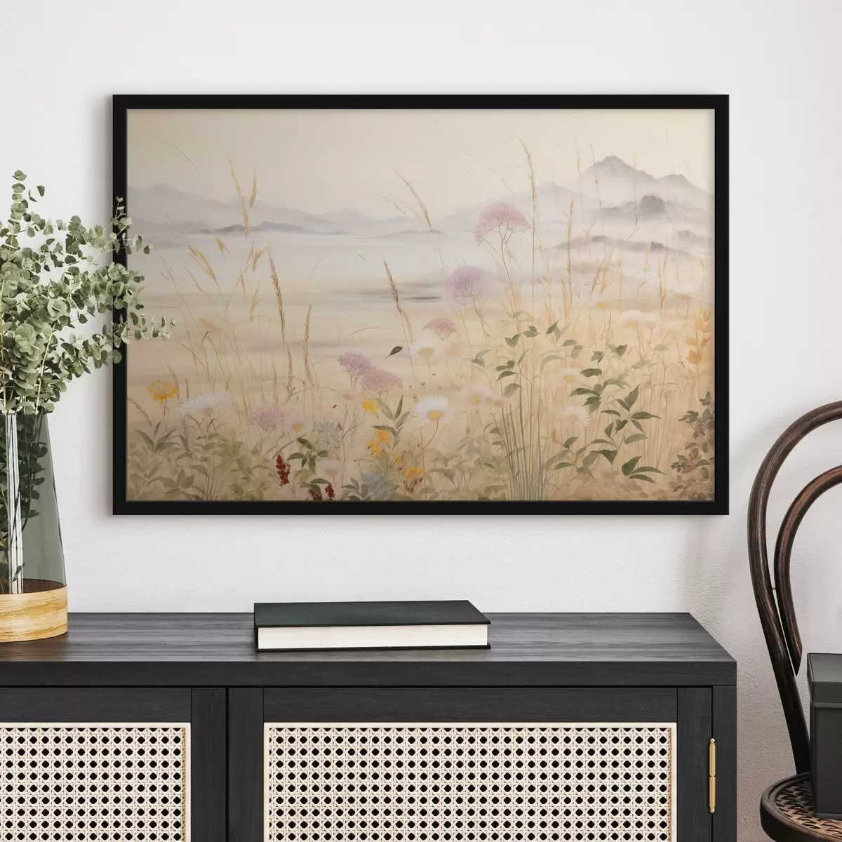 Poster Beiges Blumenfeld, Wiesengräser, zarte Landschaft Nr f48480