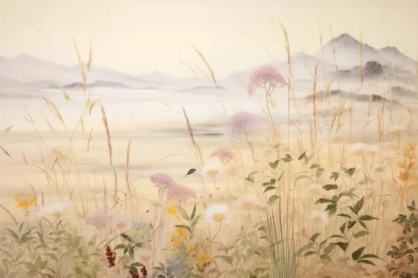 Poster Beiges Blumenfeld, Wiesengräser, zarte Landschaft Nr f48480