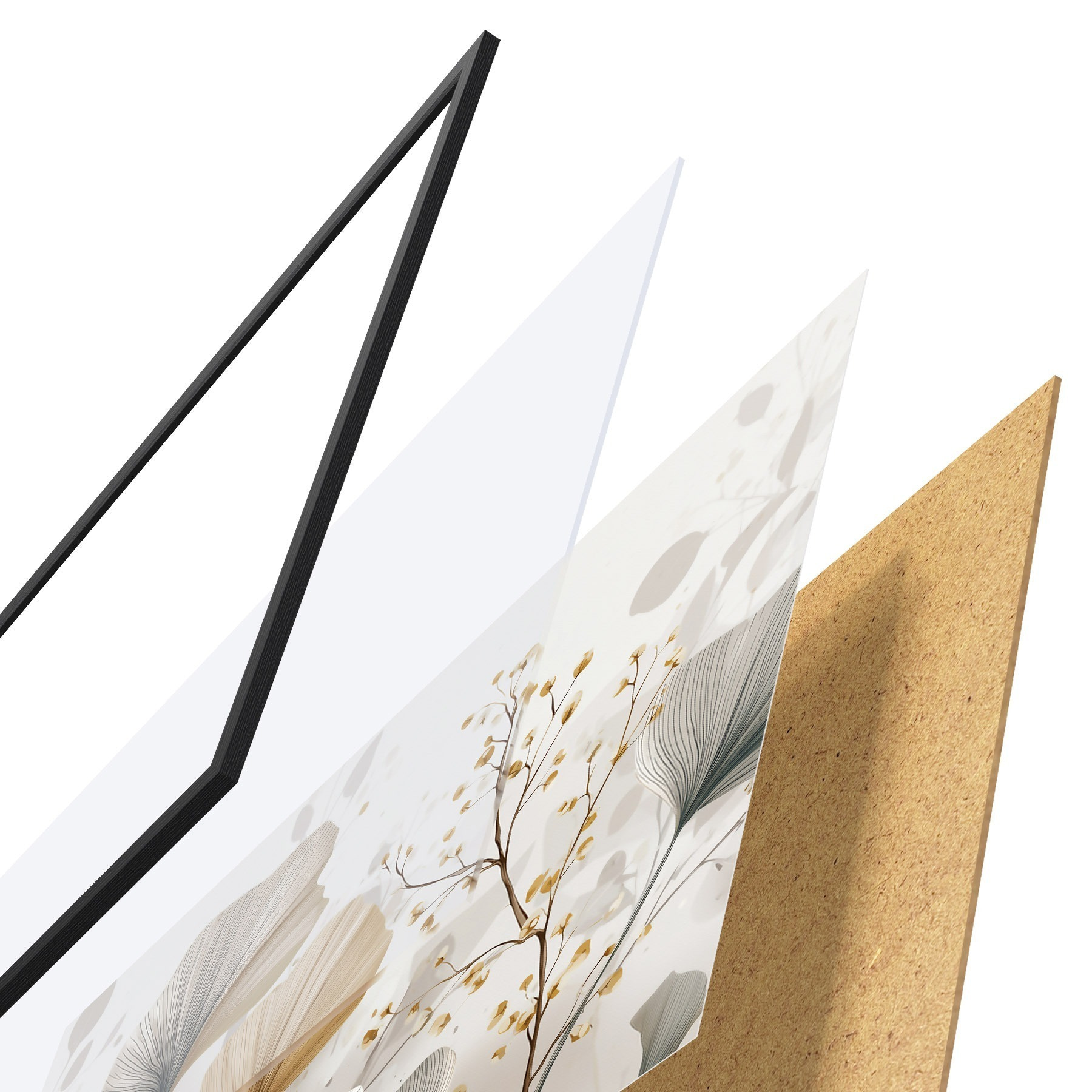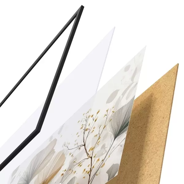 Das Poster besteht aus einem Rahmen, Plexiglas, einem gedruckten Bild und einer Rückwand aus Spanplatten. Dank der Halterungen auf der Rückseite kann das Poster sofort an die Wand gehängt werden.