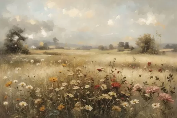 Poster Wiesenblumenfeld im sanften Licht Nr f48491