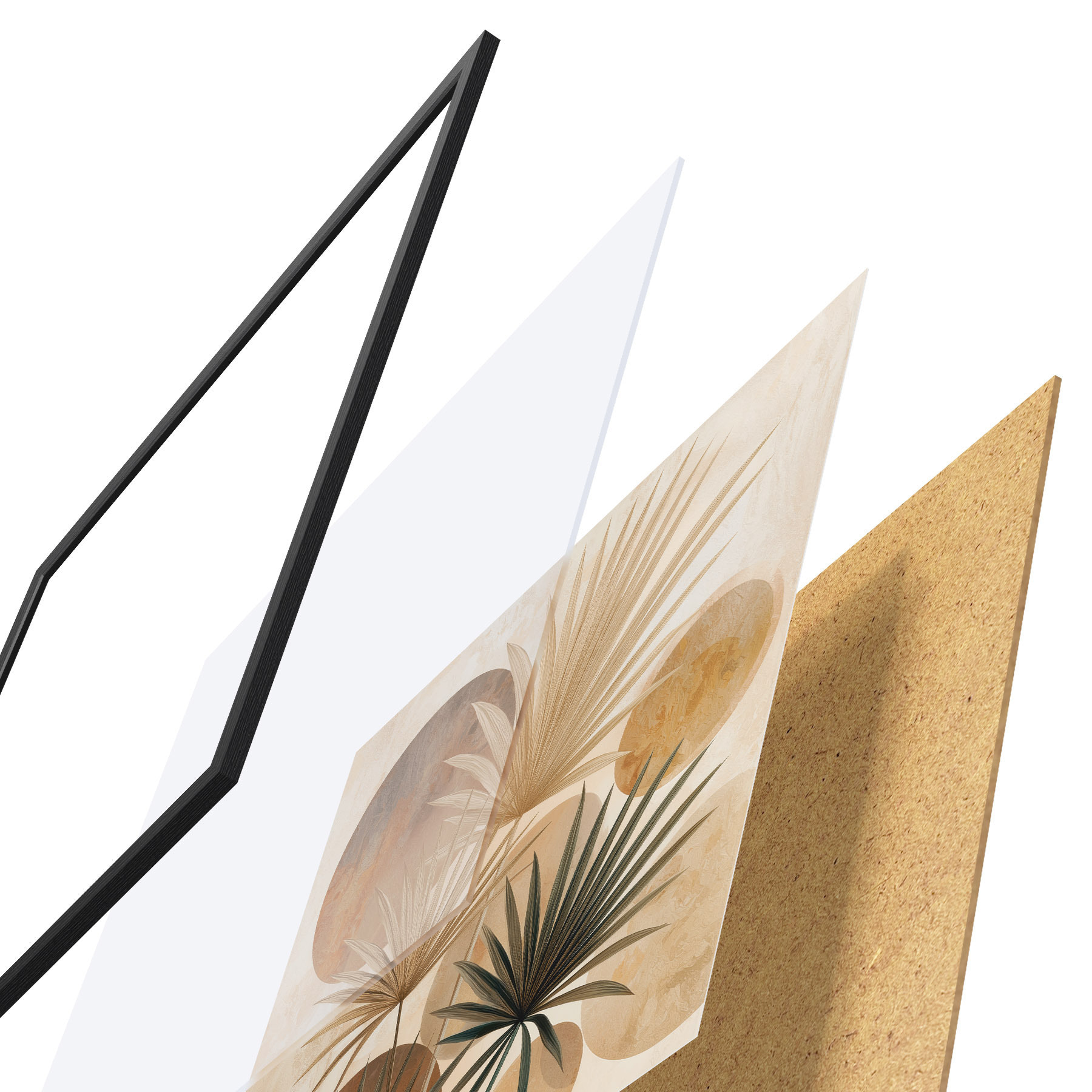Das Poster besteht aus einem Rahmen, Plexiglas, einem gedruckten Bild und einer Rückwand aus Spanplatten. Dank der Halterungen auf der Rückseite kann das Poster sofort an die Wand gehängt werden.