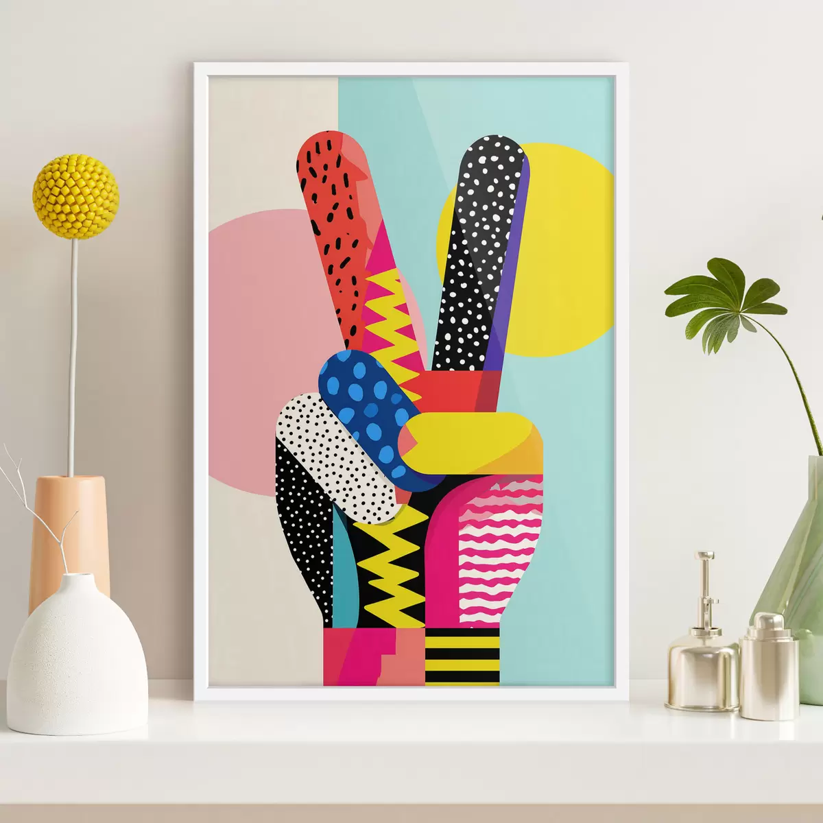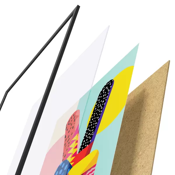 Das Poster besteht aus einem Rahmen, Plexiglas, einem gedruckten Bild und einer Rückwand aus Spanplatten. Dank der Halterungen auf der Rückseite kann das Poster sofort an die Wand gehängt werden.