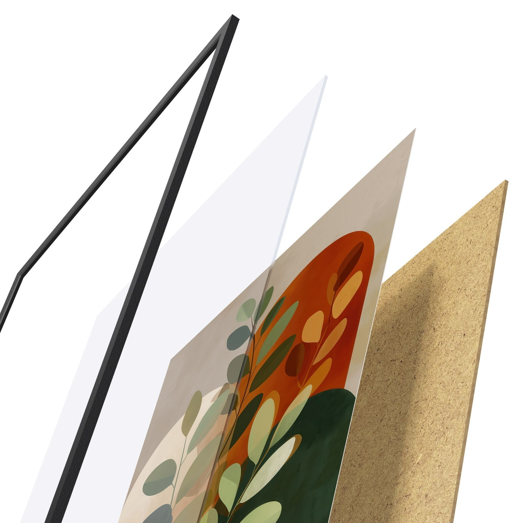 Das Poster besteht aus einem Rahmen, Plexiglas, einem gedruckten Bild und einer Rückwand aus Spanplatten. Dank der Halterungen auf der Rückseite kann das Poster sofort an die Wand gehängt werden.