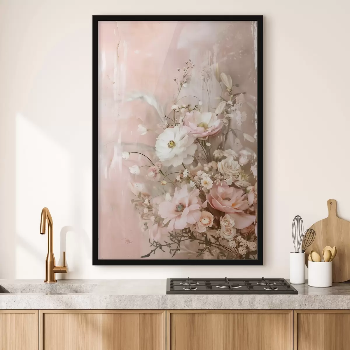 Poster Blumenarrangement in Beige- und Rosatönen Nr f48564
