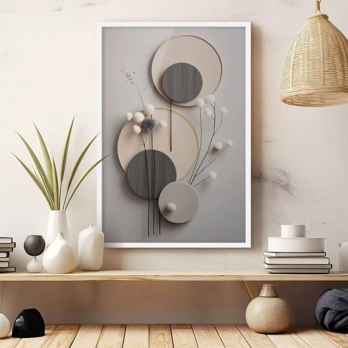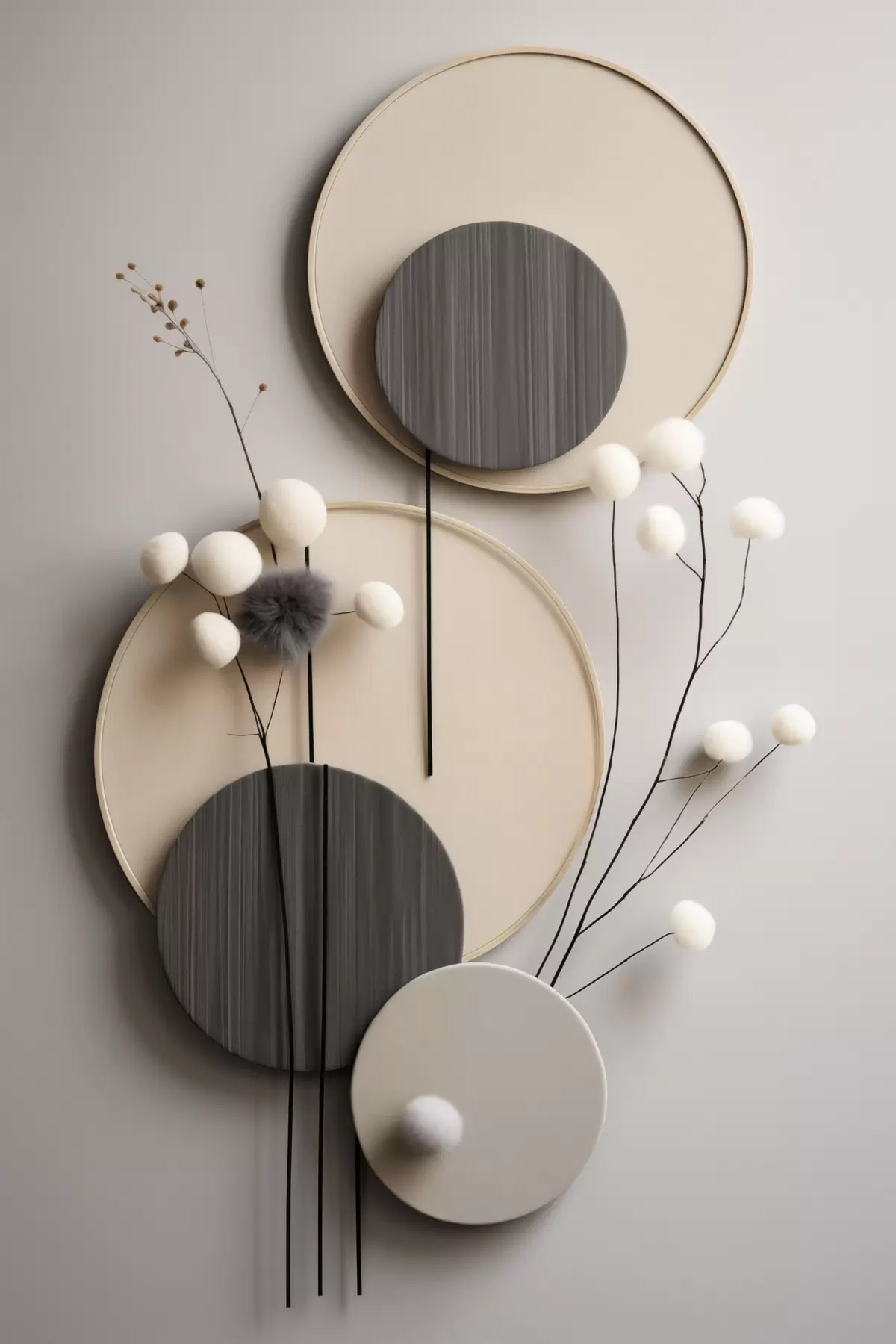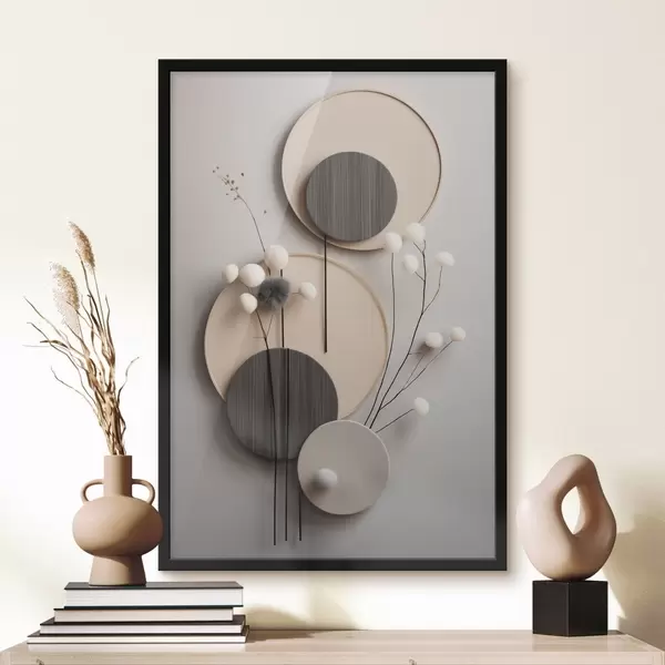 Poster Runde Paneele mit trockenen Zweigen und weichen Kugeln Nr f48601