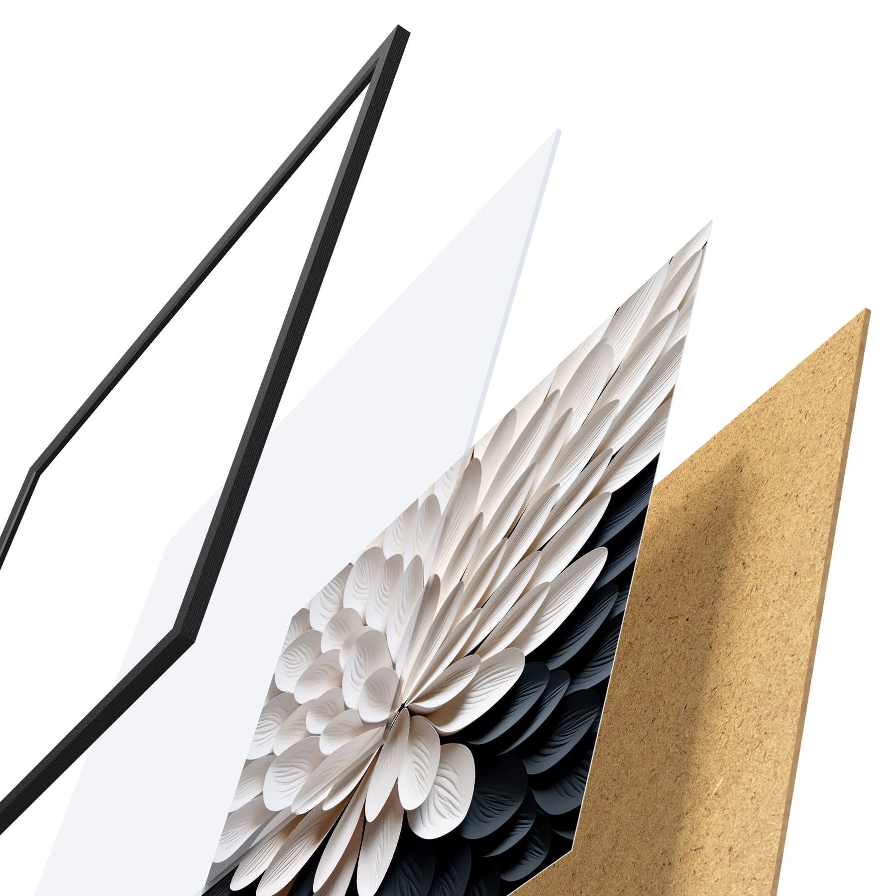 Das Poster besteht aus einem Rahmen, Plexiglas, einem gedruckten Bild und einer Rückwand aus Spanplatten. Dank der Halterungen auf der Rückseite kann das Poster sofort an die Wand gehängt werden.