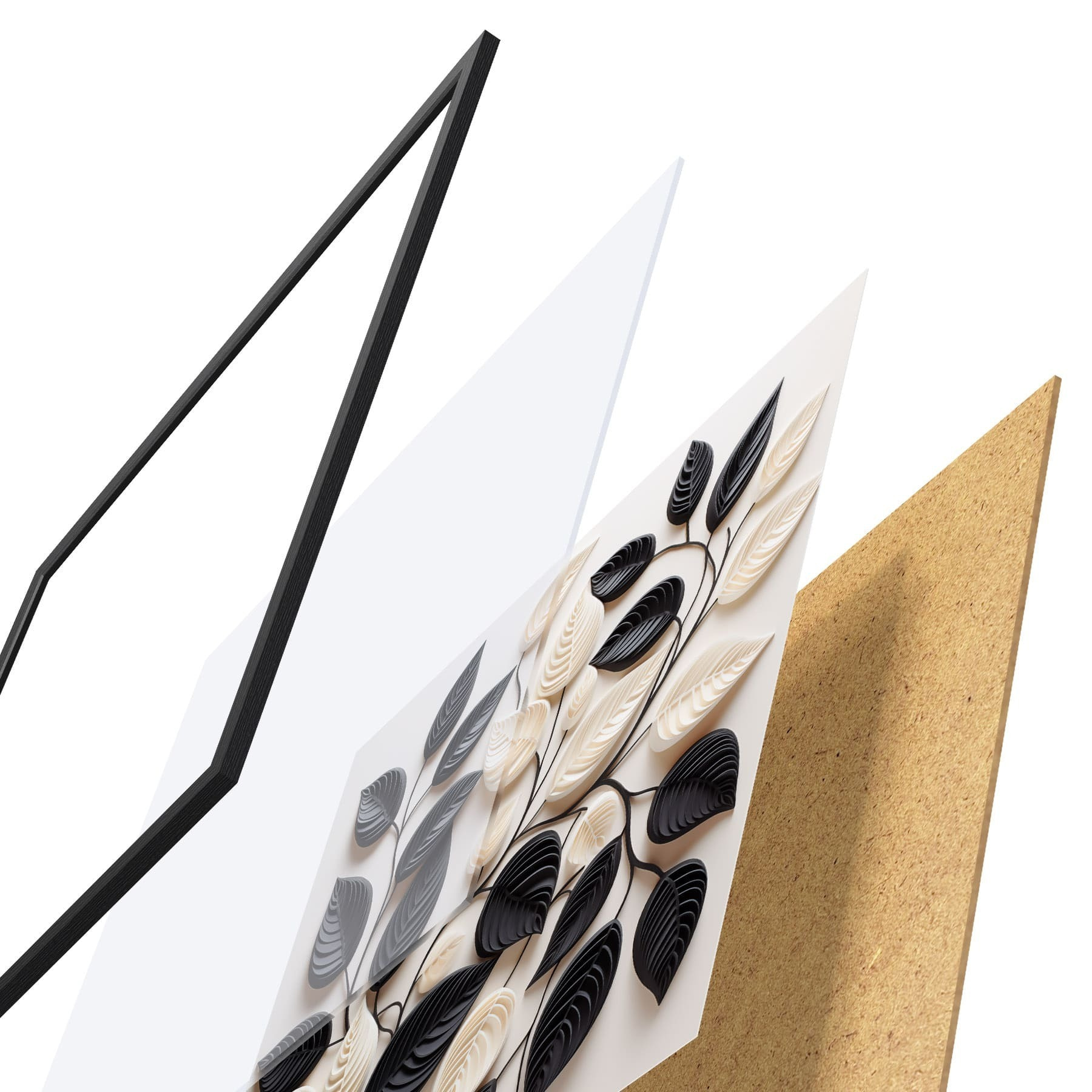 Poster Komposition aus schwarzen und hellen Blättern an Zweigen Nr f48606
