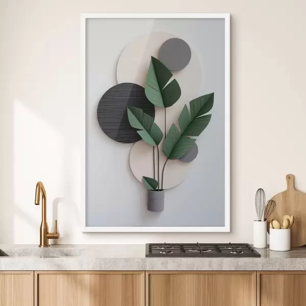 Poster Minimalistisches Layout mit geometrischen Kreisen und grünen Blättern Nr f48607