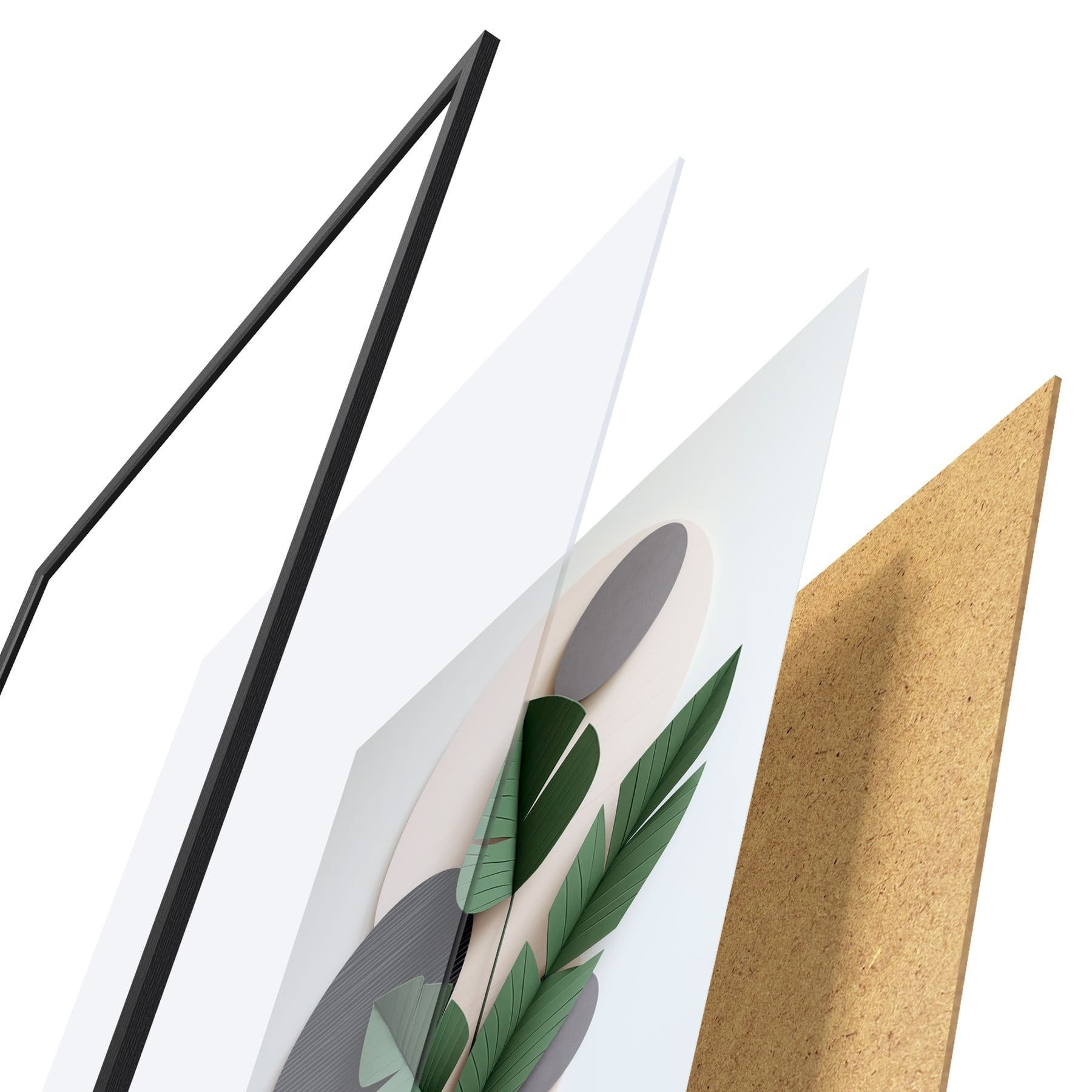 Das Poster besteht aus einem Rahmen, Plexiglas, einem gedruckten Bild und einer Rückwand aus Spanplatten. Dank der Halterungen auf der Rückseite kann das Poster sofort an die Wand gehängt werden.