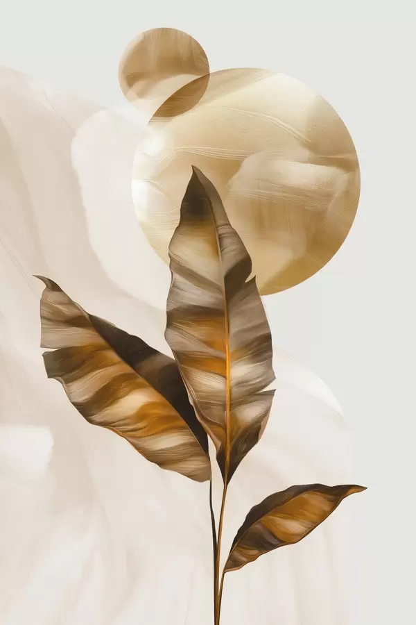 Poster Eine abstrakte Komposition aus Blättern und Kreisen f48614