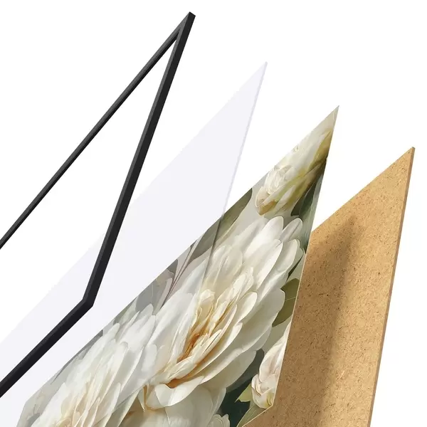 Das Poster besteht aus einem Rahmen, Plexiglas, einem gedruckten Bild und einer Rückwand aus Spanplatten. Dank der Halterungen auf der Rückseite kann das Poster sofort an die Wand gehängt werden.