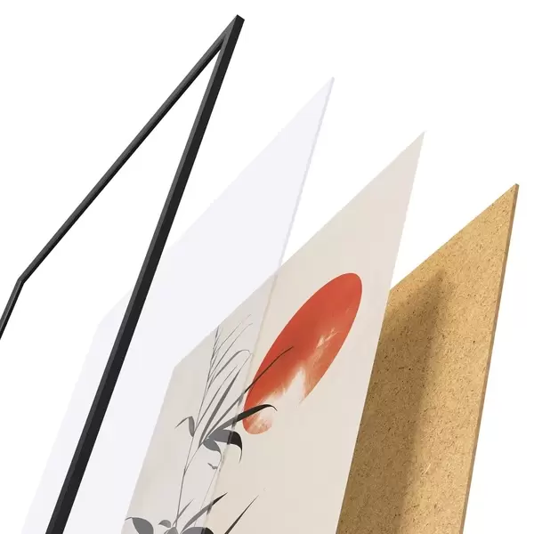 Das Poster besteht aus einem Rahmen, Plexiglas, einem gedruckten Bild und einer Rückwand aus Spanplatten. Dank der Halterungen auf der Rückseite kann das Poster sofort an die Wand gehängt werden.