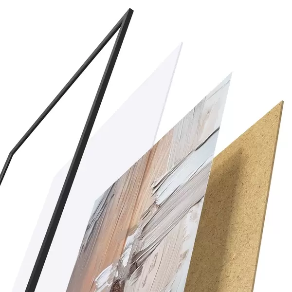 Das Poster besteht aus einem Rahmen, Plexiglas, einem gedruckten Bild und einer Rückwand aus Spanplatten. Dank der Halterungen auf der Rückseite kann das Poster sofort an die Wand gehängt werden.