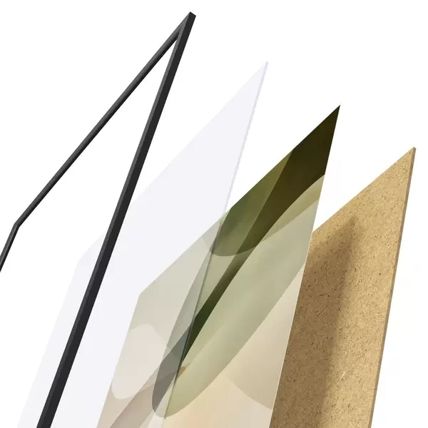 Das Poster besteht aus einem Rahmen, Plexiglas, einem gedruckten Bild und einer Rückwand aus Spanplatten. Dank der Halterungen auf der Rückseite kann das Poster sofort an die Wand gehängt werden.