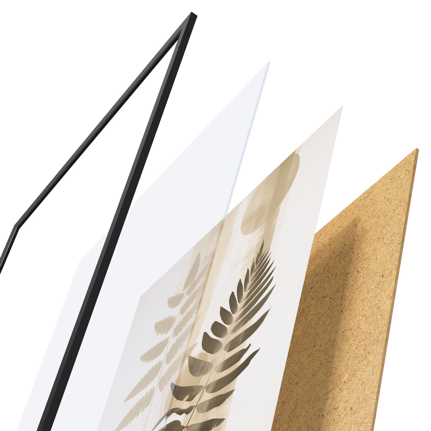 Das Poster besteht aus einem Rahmen, Plexiglas, einem gedruckten Bild und einer Rückwand aus Spanplatten. Dank der Halterungen auf der Rückseite kann das Poster sofort an die Wand gehängt werden.