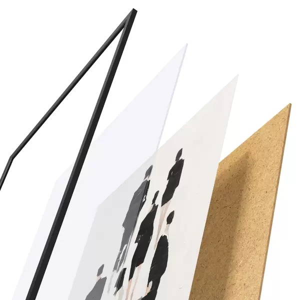 Das Poster besteht aus einem Rahmen, Plexiglas, einem gedruckten Bild und einer Rückwand aus Spanplatten. Dank der Halterungen auf der Rückseite kann das Poster sofort an die Wand gehängt werden.