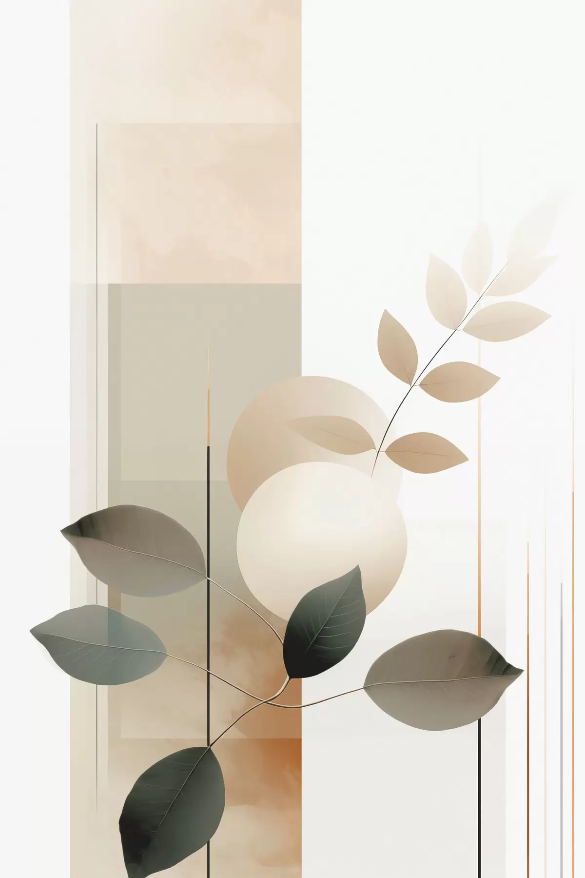 Poster Abstrakte botanische Blätter mit Formen f48668