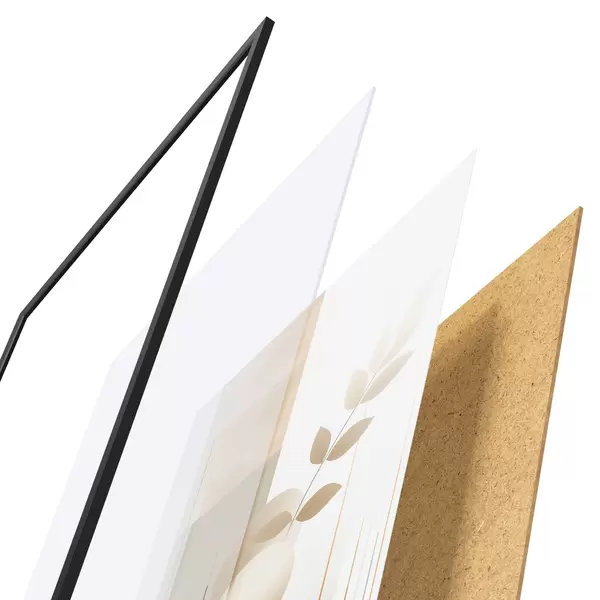Das Poster besteht aus einem Rahmen, Plexiglas, einem gedruckten Bild und einer Rückwand aus Spanplatten. Dank der Halterungen auf der Rückseite kann das Poster sofort an die Wand gehängt werden.