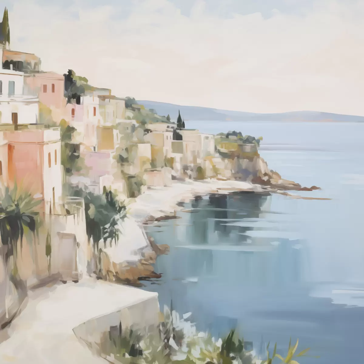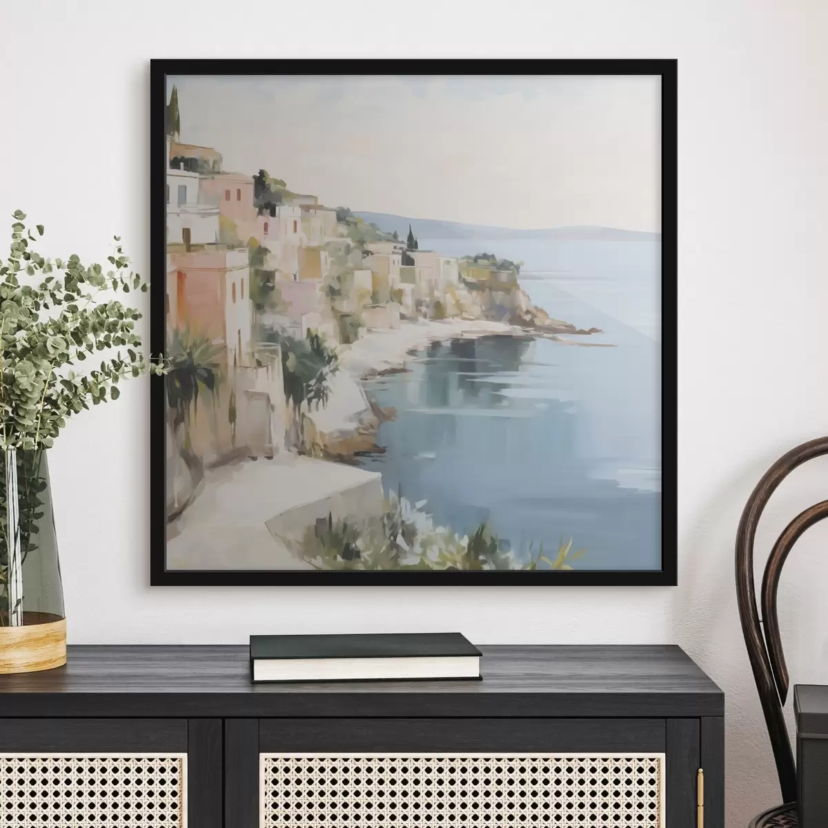 Poster Landschaft einer Küstenstadt – Nachahmung eines Gemäldes f48675