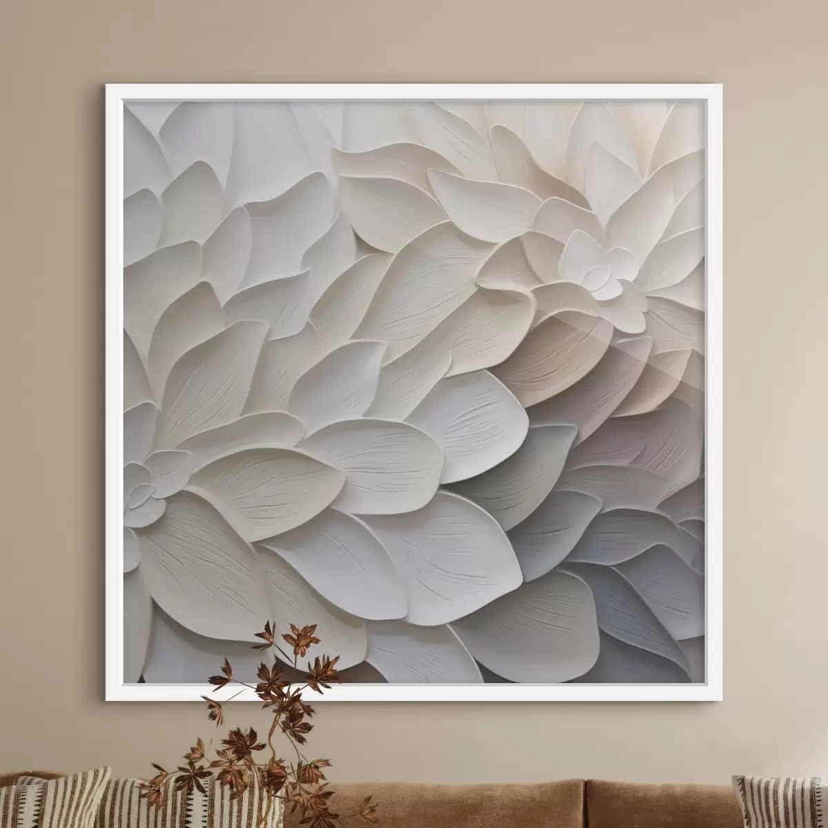 Wir empfehlen, das Bild nicht direkt unter Sonnenlicht oder in einem feuchten Raum aufzustellen. Dies kann die Helligkeit des Bildes mit der Zeit beeinträchtigen.