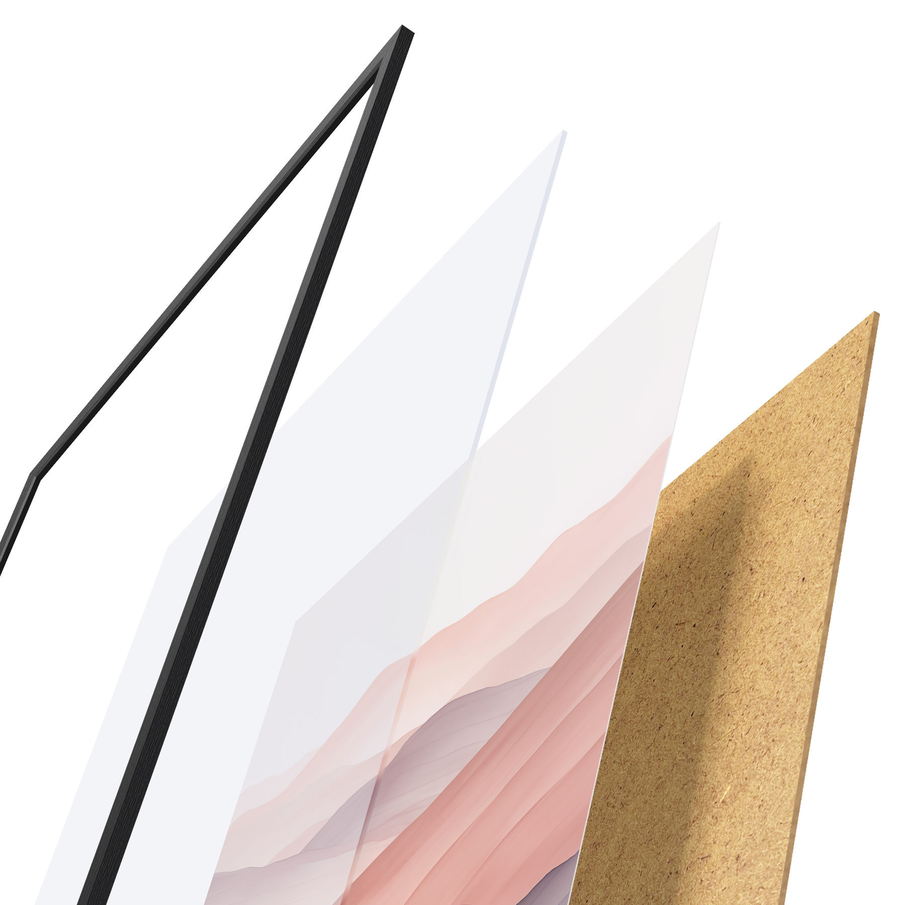 Das Poster besteht aus einem Rahmen, Plexiglas, einem gedruckten Bild und einer Rückwand aus Spanplatten. Dank der Halterungen auf der Rückseite kann das Poster sofort an die Wand gehängt werden.