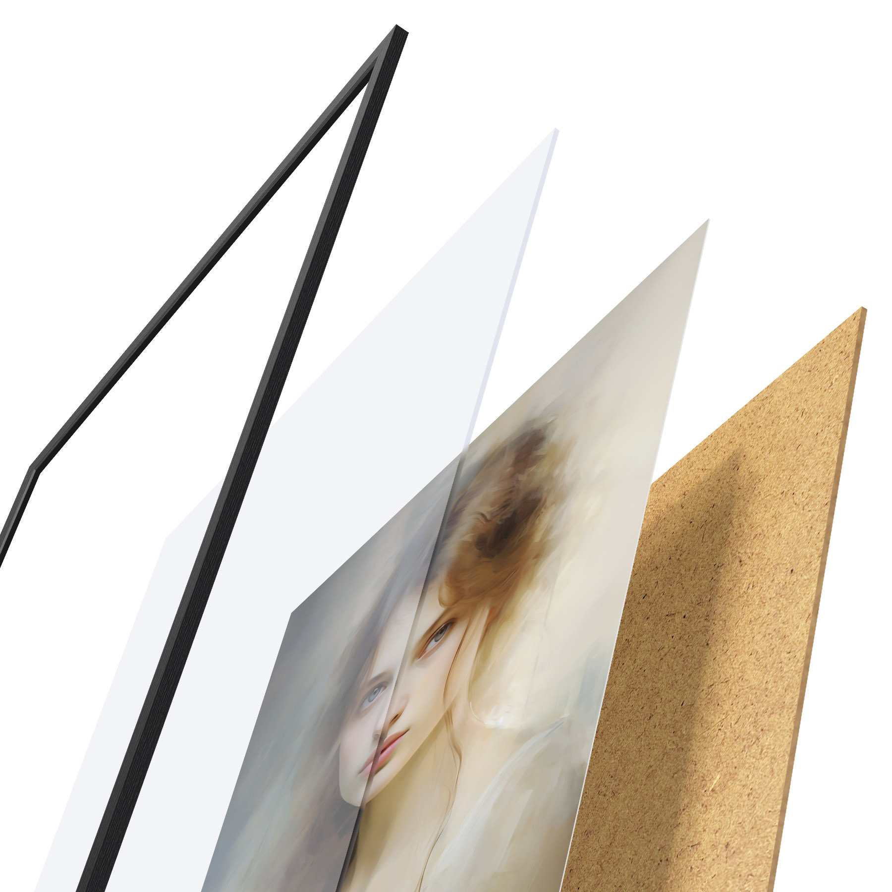 Das Poster besteht aus einem Rahmen, Plexiglas, einem gedruckten Bild und einer Rückwand aus Spanplatten. Dank der Halterungen auf der Rückseite kann das Poster sofort an die Wand gehängt werden.