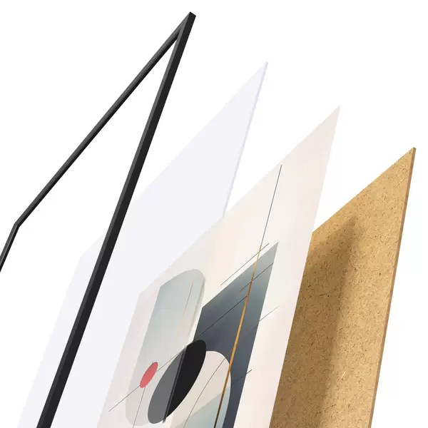 Das Poster besteht aus einem Rahmen, Plexiglas, einem gedruckten Bild und einer Rückwand aus Spanplatten. Dank der Halterungen auf der Rückseite kann das Poster sofort an die Wand gehängt werden.
