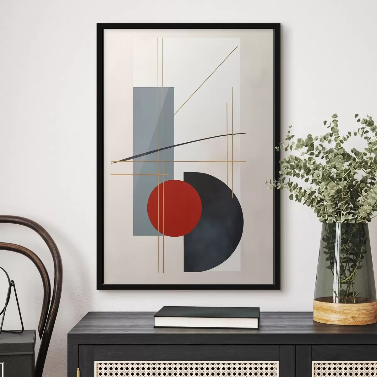Das Poster besteht aus einem Rahmen, Plexiglas, einem gedruckten Bild und einer Rückwand aus Spanplatten. Dank der Halterungen auf der Rückseite kann das Poster sofort an die Wand gehängt werden.