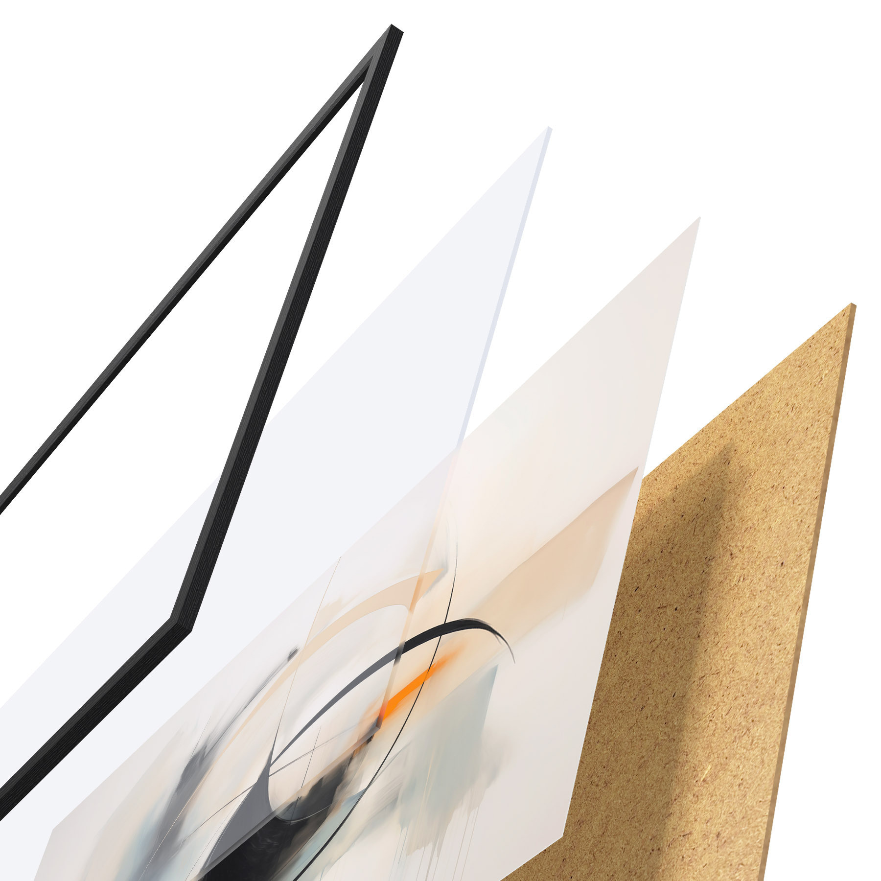Das Poster besteht aus einem Rahmen, Plexiglas, einem gedruckten Bild und einer Rückwand aus Spanplatten. Dank der Halterungen auf der Rückseite kann das Poster sofort an die Wand gehängt werden.