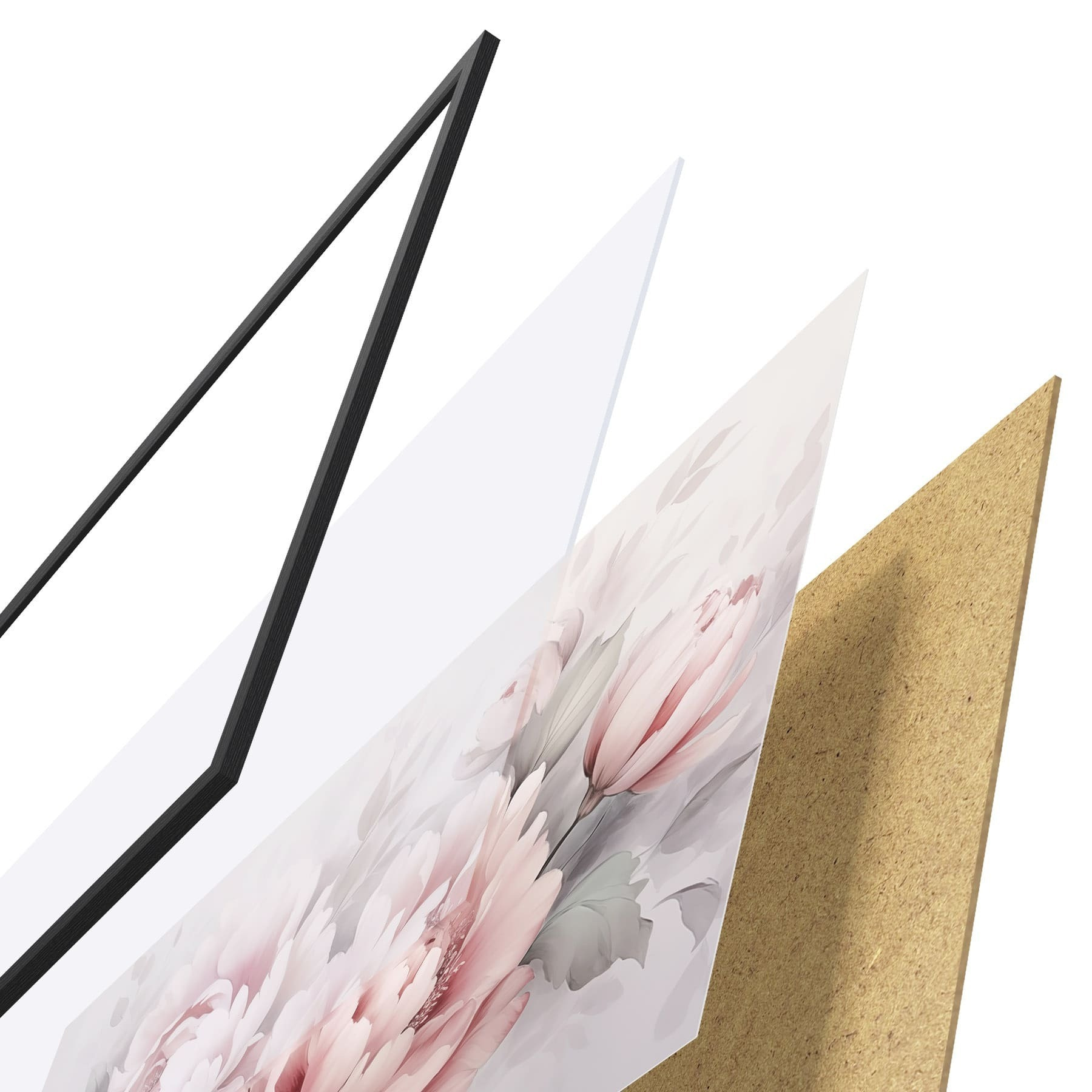 Das Poster besteht aus einem Rahmen, Plexiglas, einem gedruckten Bild und einer Rückwand aus Spanplatten. Dank der Halterungen auf der Rückseite kann das Poster sofort an die Wand gehängt werden.
