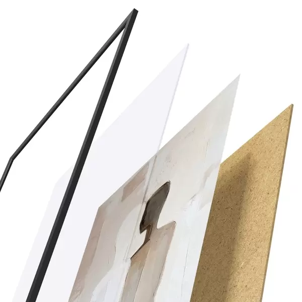 Das Poster besteht aus einem Rahmen, Plexiglas, einem gedruckten Bild und einer Rückwand aus Spanplatten. Dank der Halterungen auf der Rückseite kann das Poster sofort an die Wand gehängt werden.