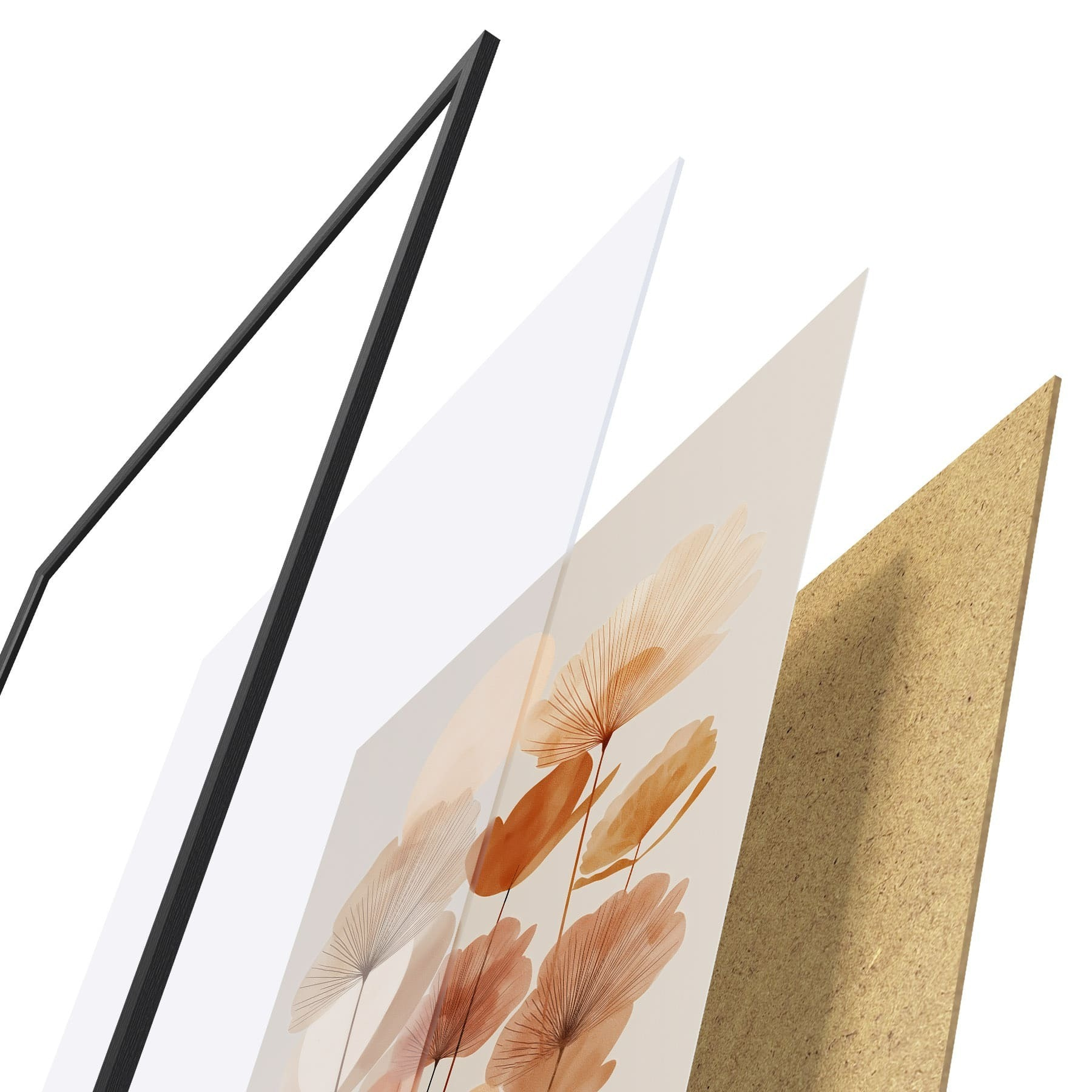 Das Poster besteht aus einem Rahmen, Plexiglas, einem gedruckten Bild und einer Rückwand aus Spanplatten. Dank der Halterungen auf der Rückseite kann das Poster sofort an die Wand gehängt werden.