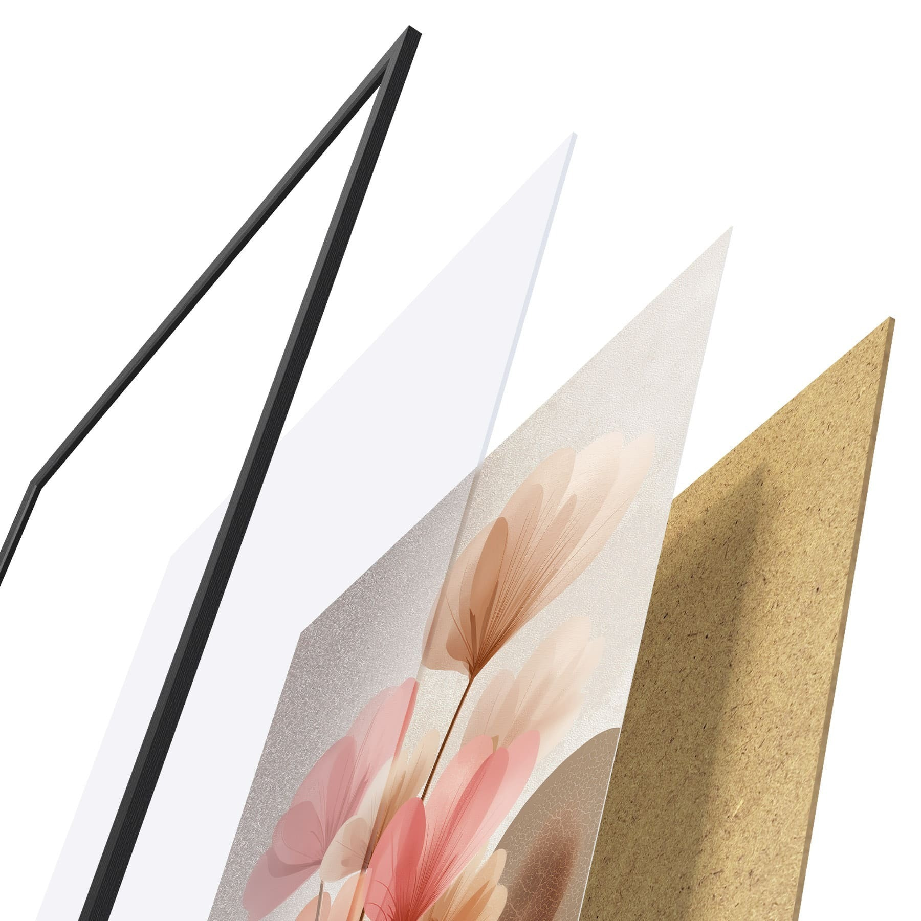 Das Poster besteht aus einem Rahmen, Plexiglas, einem gedruckten Bild und einer Rückwand aus Spanplatten. Dank der Halterungen auf der Rückseite kann das Poster sofort an die Wand gehängt werden.