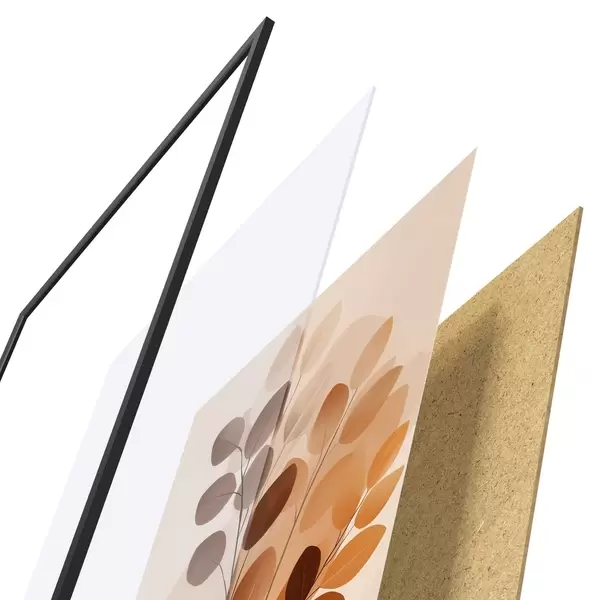 Das Poster besteht aus einem Rahmen, Plexiglas, einem gedruckten Bild und einer Rückwand aus Spanplatten. Dank der Halterungen auf der Rückseite kann das Poster sofort an die Wand gehängt werden.