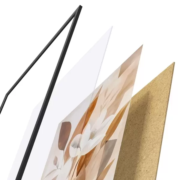 Das Poster besteht aus einem Rahmen, Plexiglas, einem gedruckten Bild und einer Rückwand aus Spanplatten. Dank der Halterungen auf der Rückseite kann das Poster sofort an die Wand gehängt werden.