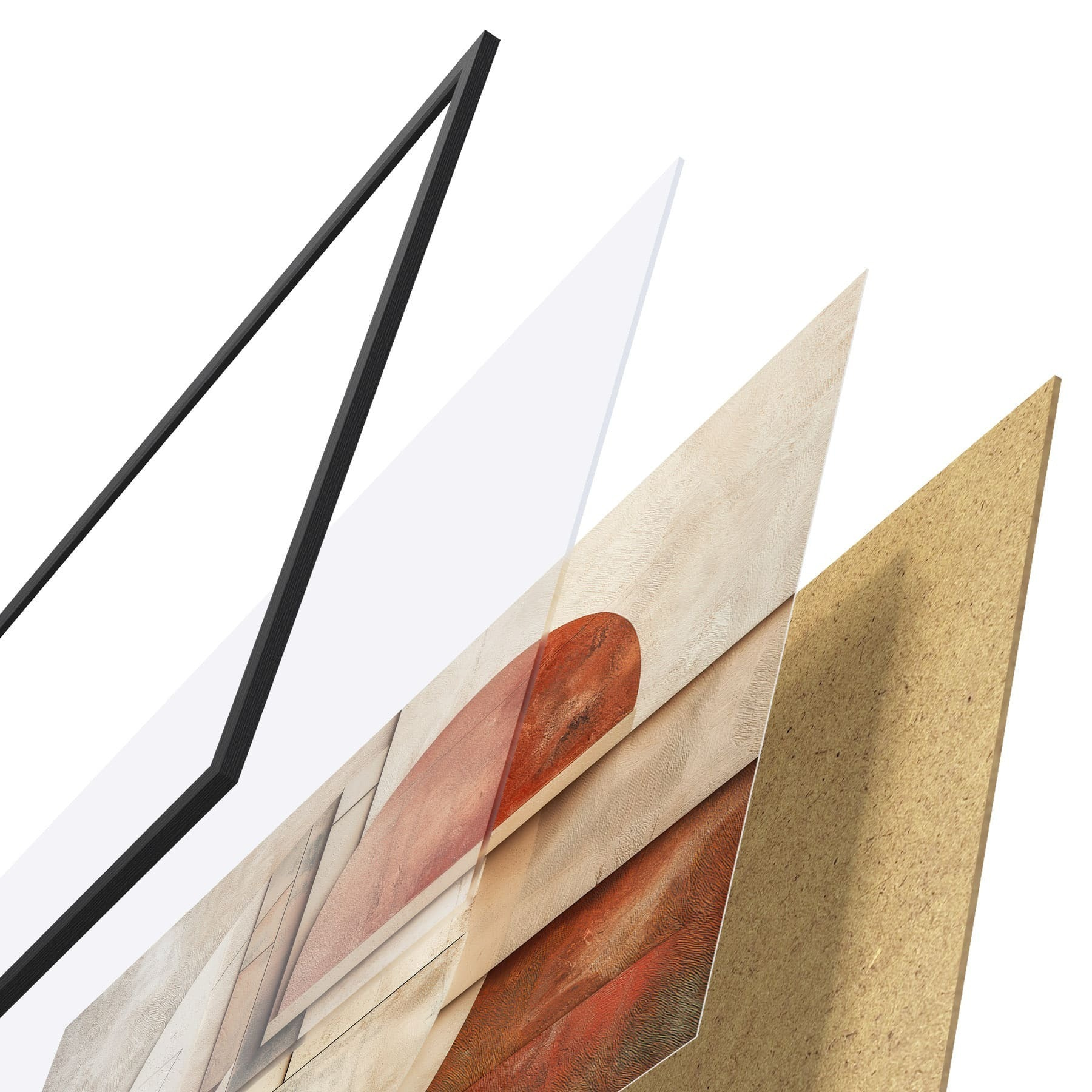 Das Poster besteht aus einem Rahmen, Plexiglas, einem gedruckten Bild und einer Rückwand aus Spanplatten. Dank der Halterungen auf der Rückseite kann das Poster sofort an die Wand gehängt werden.