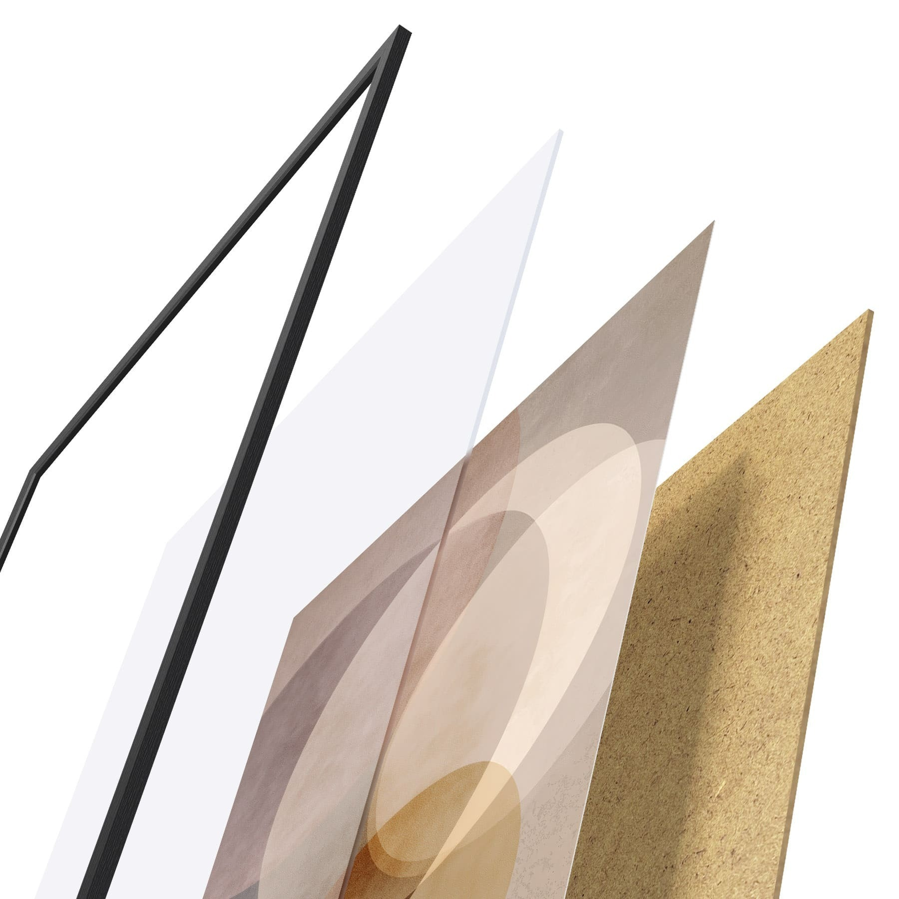 Das Poster besteht aus einem Rahmen, Plexiglas, einem gedruckten Bild und einer Rückwand aus Spanplatten. Dank der Halterungen auf der Rückseite kann das Poster sofort an die Wand gehängt werden.