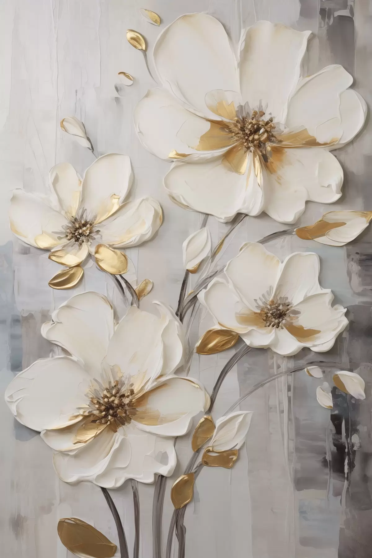 Poster Weiße Blumen mit gelben Akzenten auf einem strukturierten Hintergrund Nr f48721