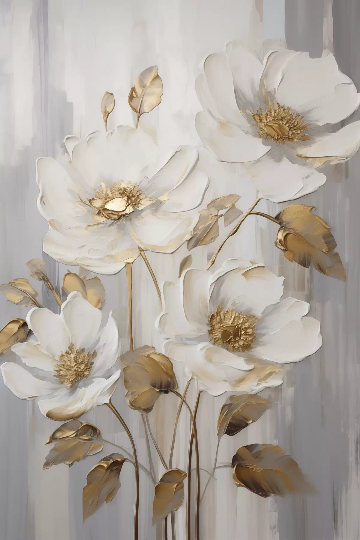 Poster Weiße Blumen mit gelben Akzenten auf einem strukturierten Hintergrund Nr f48722