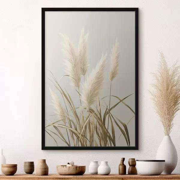 Poster Mehrere hohe, federartige Pampasgräser mit langen, schlanken Blättern f48723