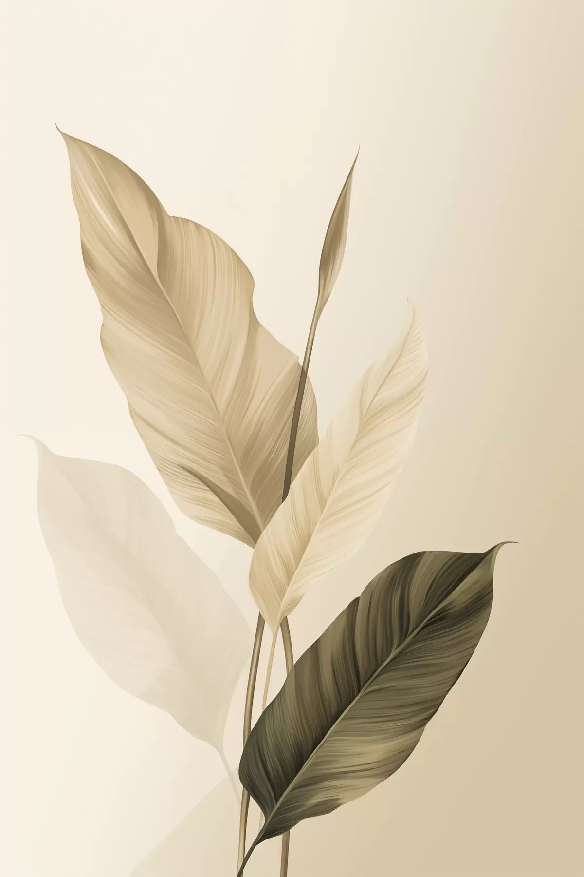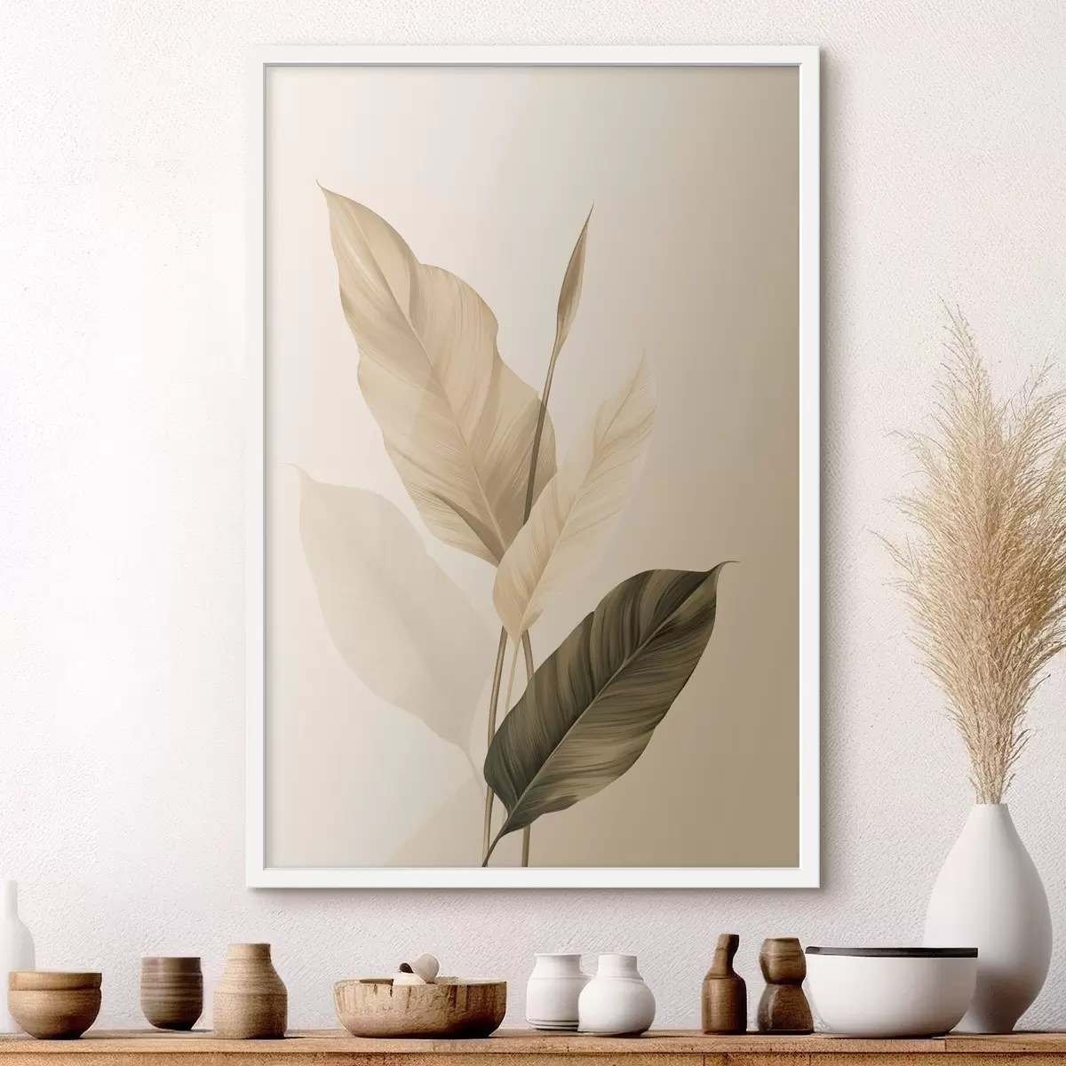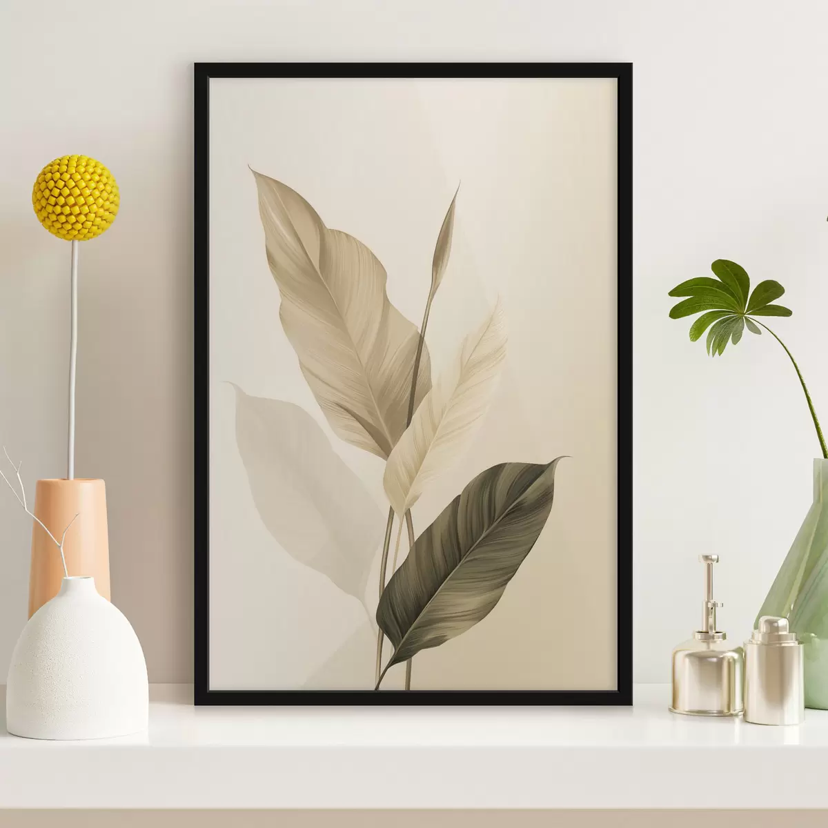 Poster Große tropische Blätter in Beige- und Brauntönen, heller Hintergrund Nr f48725