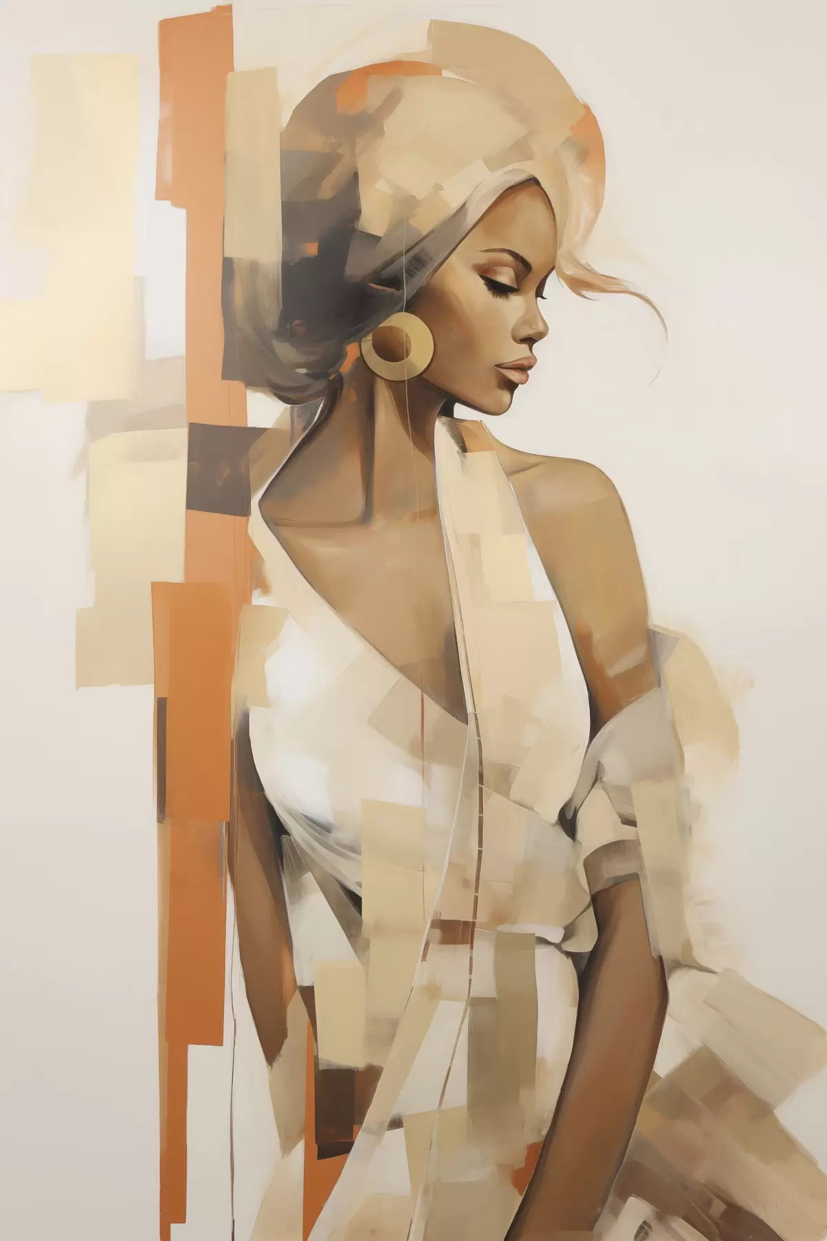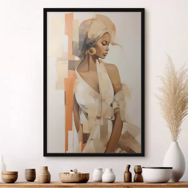 Poster Abstraktes Frauenporträt mit orangefarbenen und beigen Formen Nr f48735