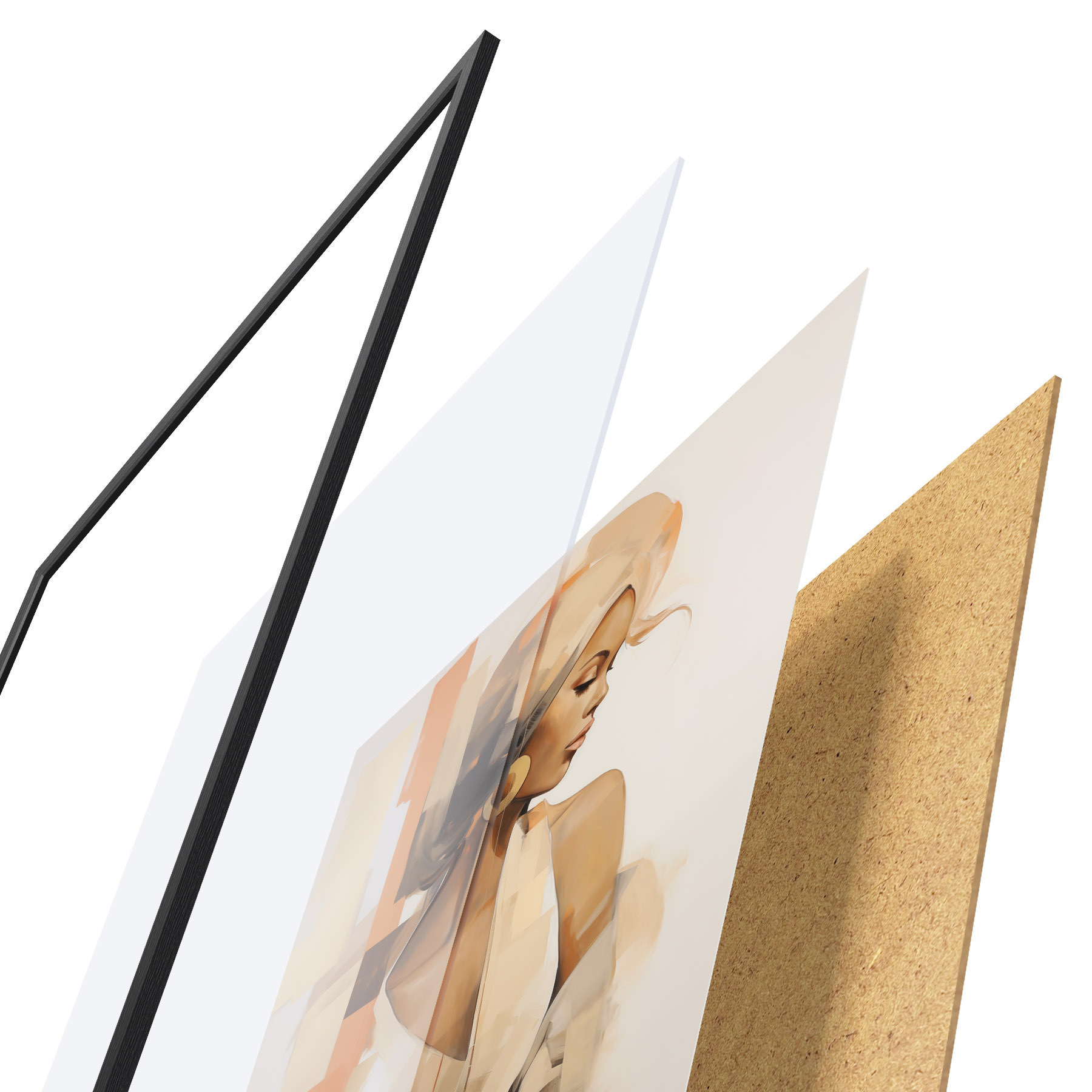 Das Poster besteht aus einem Rahmen, Plexiglas, einem gedruckten Bild und einer Rückwand aus Spanplatten. Dank der Halterungen auf der Rückseite kann das Poster sofort an die Wand gehängt werden.