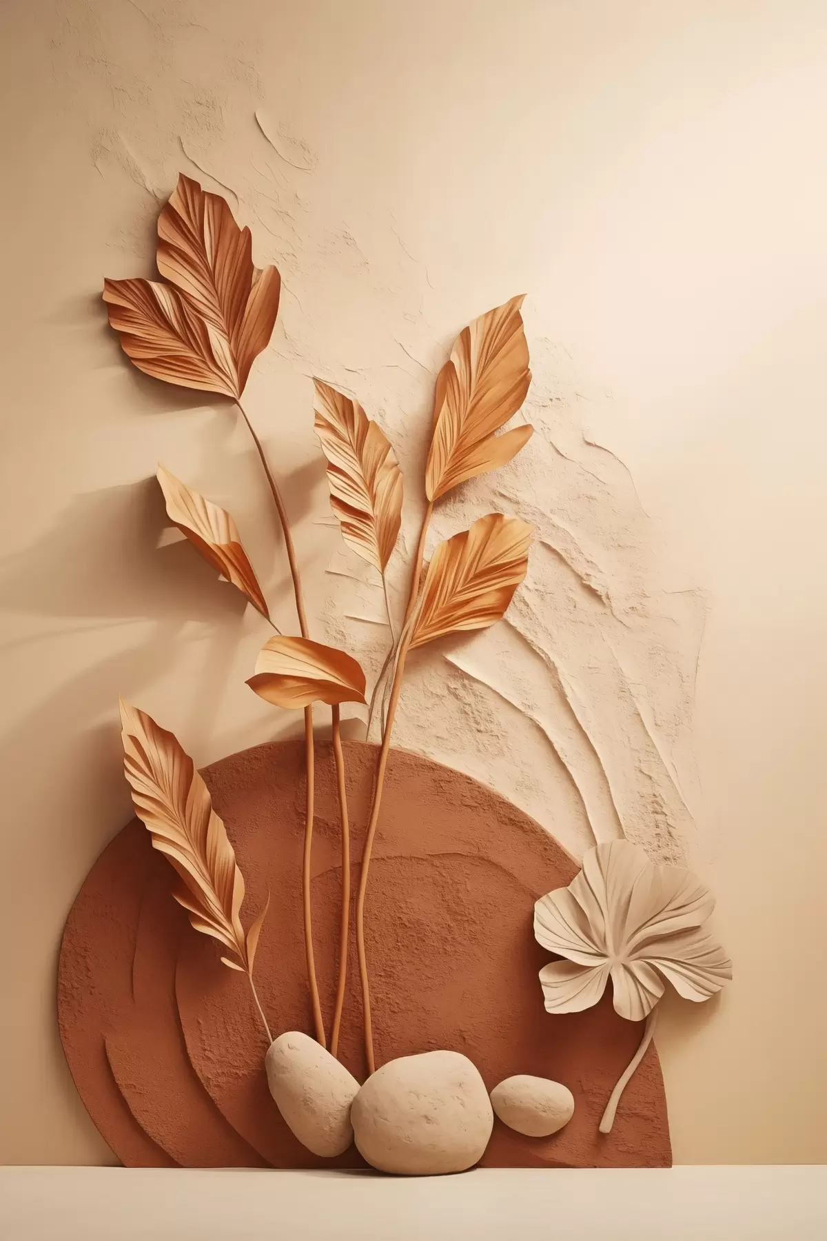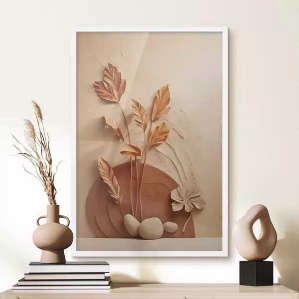 Poster Ein minimalistisches Kunstwerk mit Trockenblumen und Pampasgras, strukturierter Hintergrund f48740