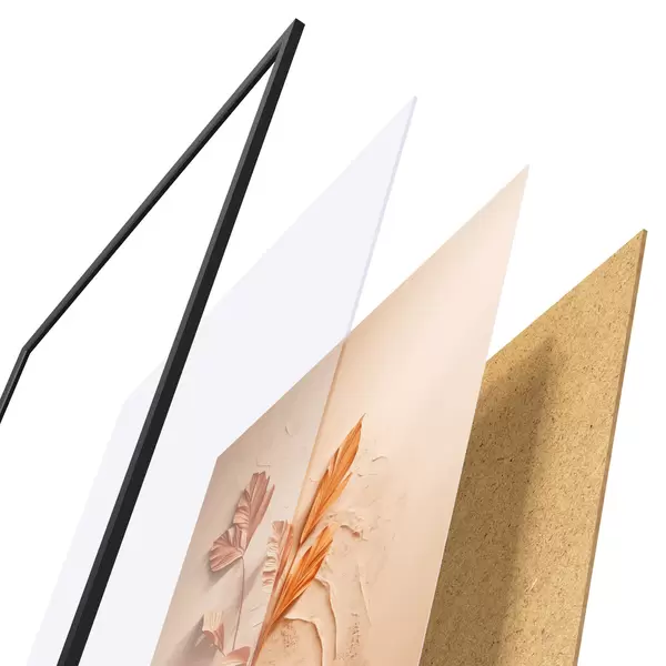 Das Poster besteht aus einem Rahmen, Plexiglas, einem gedruckten Bild und einer Rückwand aus Spanplatten. Dank der Halterungen auf der Rückseite kann das Poster sofort an die Wand gehängt werden.