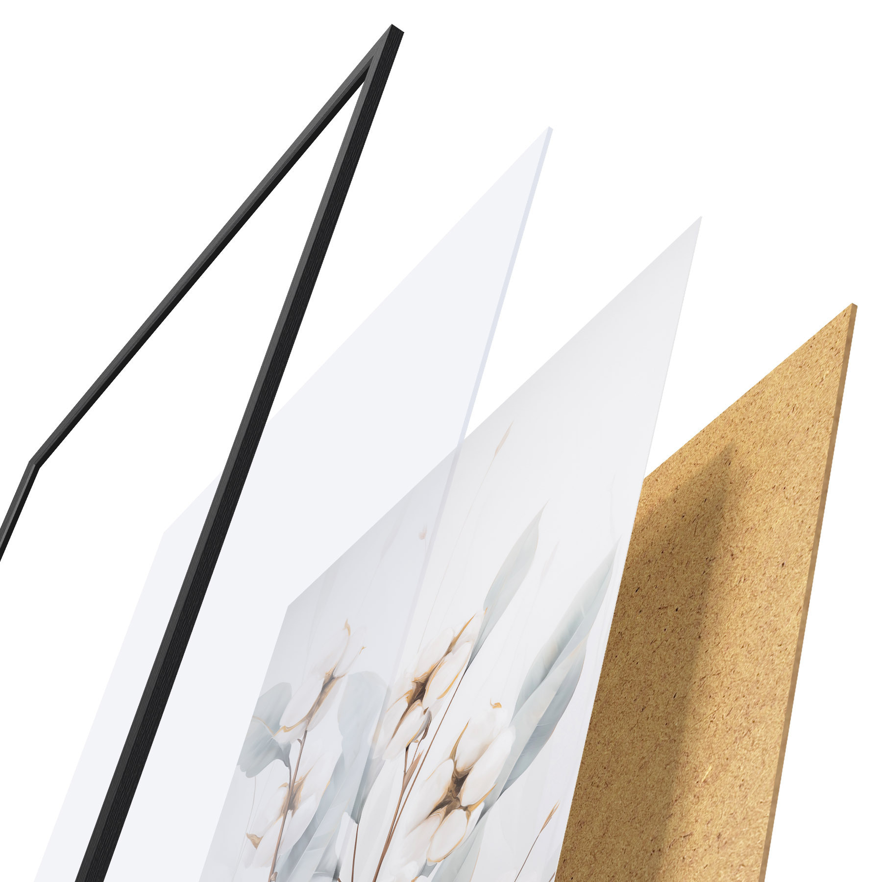Das Poster besteht aus einem Rahmen, Plexiglas, einem gedruckten Bild und einer Rückwand aus Spanplatten. Dank der Halterungen auf der Rückseite kann das Poster sofort an die Wand gehängt werden.