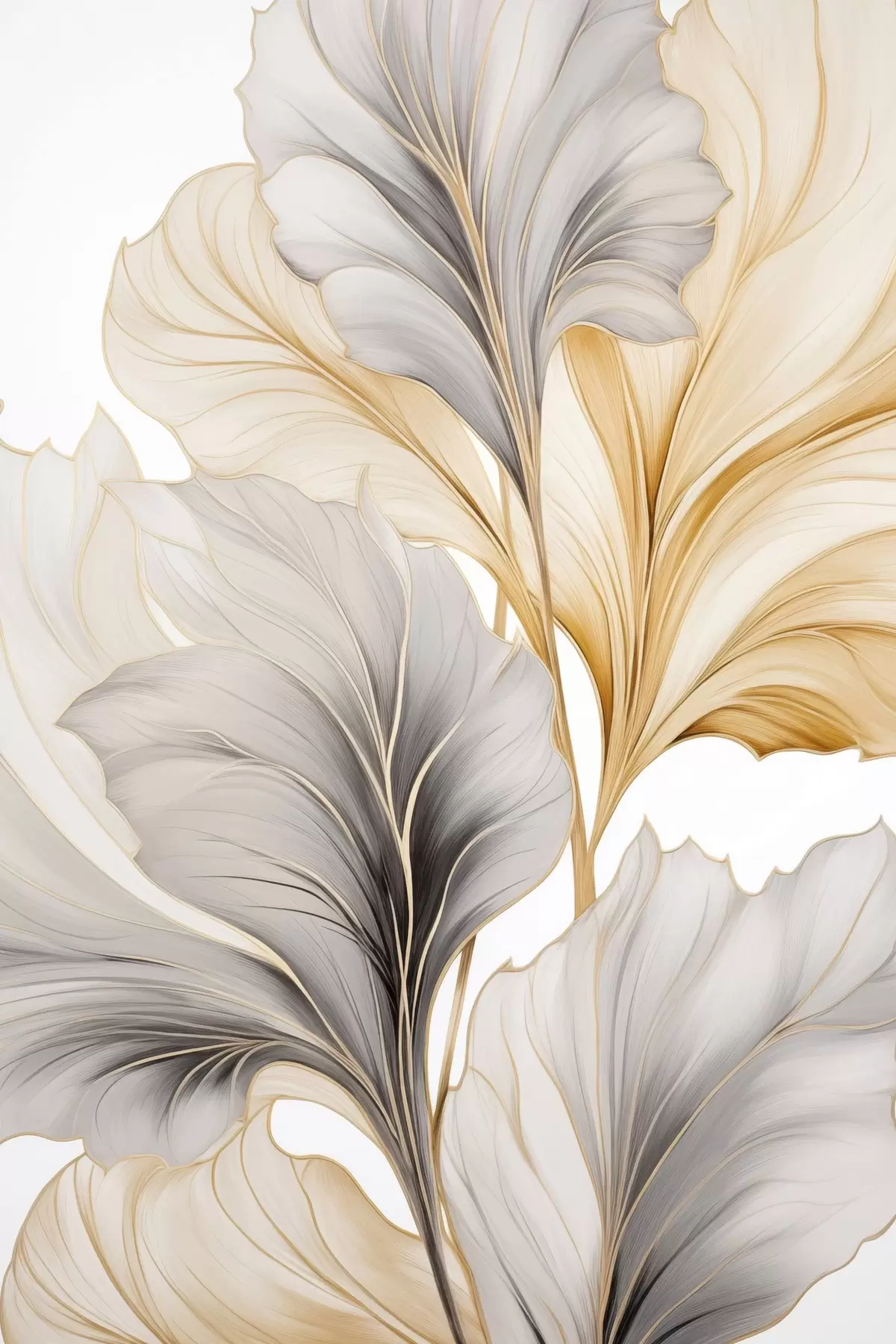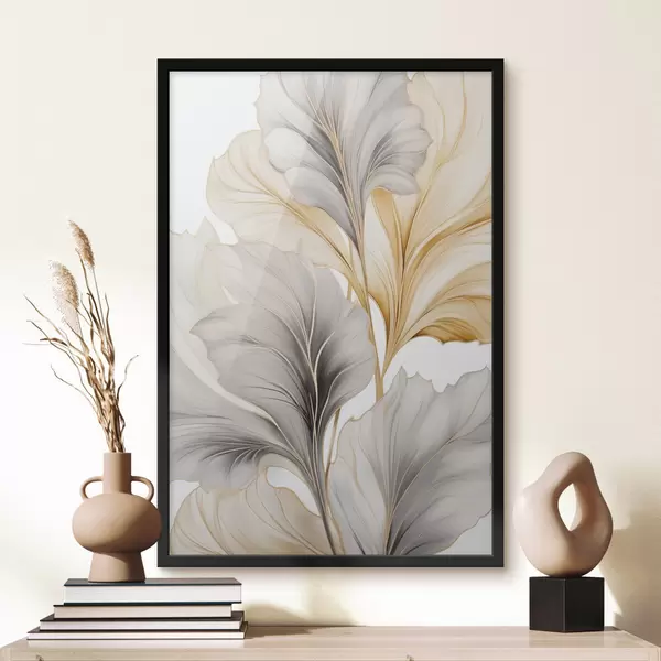 Poster Große, durchscheinende Blätter in Grau- und Gelbtönen Nr f48745