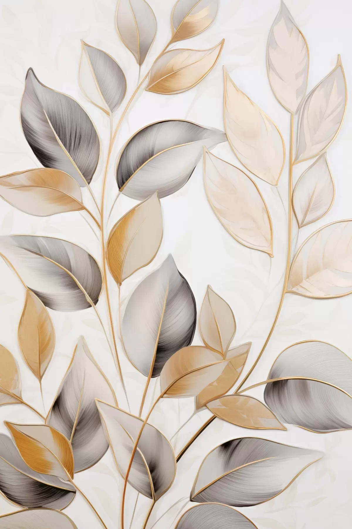 Poster Große, durchscheinende Blätter in Grau- und Gelbtönen Nr f48746